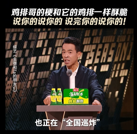 鸡排哥通盘的梗王人来自摆摊活命,直白又接地气。开场就甩出摆摊理论禅“我说完你的说你的,我4:30以后不接散客”;辱弄刘畊宏的8块腹肌,班师接上我方的6块鸡排,还不忘提学生5元的福利;说后厨挂着宋小宝的像片当“色卡”,用来领导炸鸡排的放油时机,轻便的联思尽是活命意旨;吐槽杨迪空运鸡排的行为,更是坚合手摊主的原则,直言“鸡排要趁热吃,凉了就罢手售卖”,意在言表是我方对食材的执着。