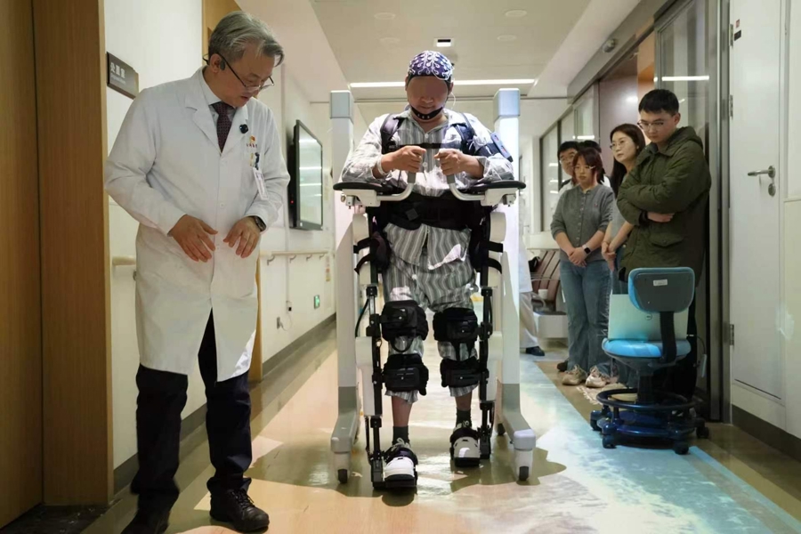 3月20日下昼,别称因胸段脊髓毁伤致截瘫6个月的患者叶先生,在同济大学附属同济病院同康楼骨科计划型病房,初度依靠自己意志放荡完结自主直立与行走。