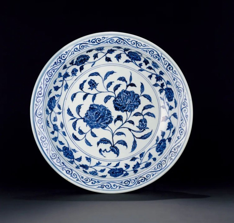 明代永乐年间(1403-1424年在位)青花牡丹纹盘