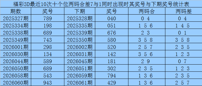 从以上统计不错看出,十个位两码合差7与1同期出现之后其下期两码合差宗旨最热的4个诀别为:1235,本期十个位两码合差不错参考这四码中的数据。