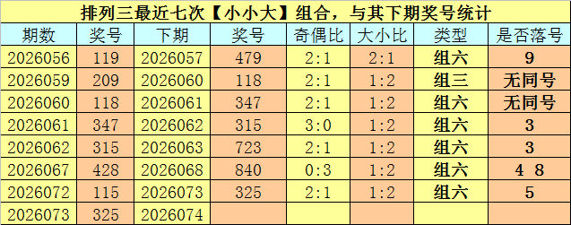 奖号类型分析:摆列三最近七次【小小大】组合与【奇偶奇】组合出现之后,其下期组三号码开出2次,组六号码开出12次,其中组六号码开出频率相配热,本期瞻望无间开出组六号码。另外,其下期有3期莫得出现重号,本期不看好开出重号。