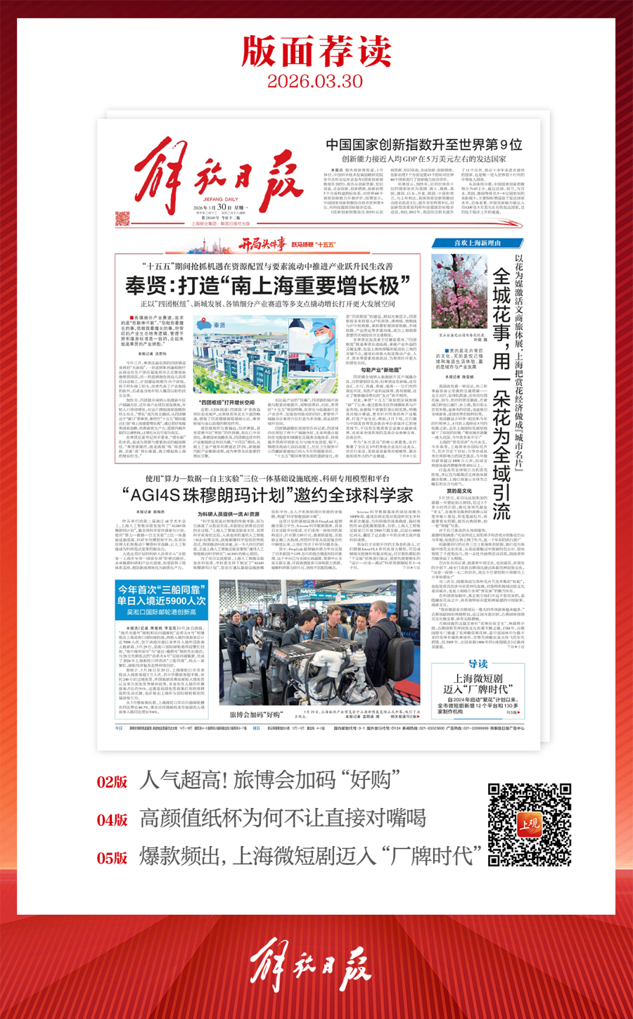 早上好!上不雅新闻『早读』来啦!今天是2026年3月30日星期一,农历二月十二。