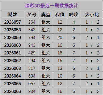 开奖归来:福彩3D上期开奖号为934,和值为16,跨度6,其中奖号大小比为1:2